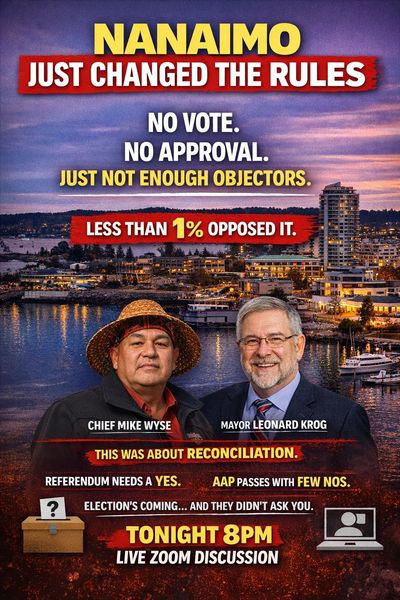 Last week we walked through the judicial review and what’s being challenged regarding the Nanaimo AAP. This week, we’re getting into what actually happened - and how it happened. Nanaimo didn’t go to the electorate, didn’t hold a vote, and didn’t ask for approval. Instead, they used an Alternative Approval Process and moved forward anyway. Under an AAP, something passes automatically unless at least 10% of eligible voters formally object. That’s it. No ballots, no majority, no requirement to prove public support. In this case, fewer than 1% objected, so the change was approved.